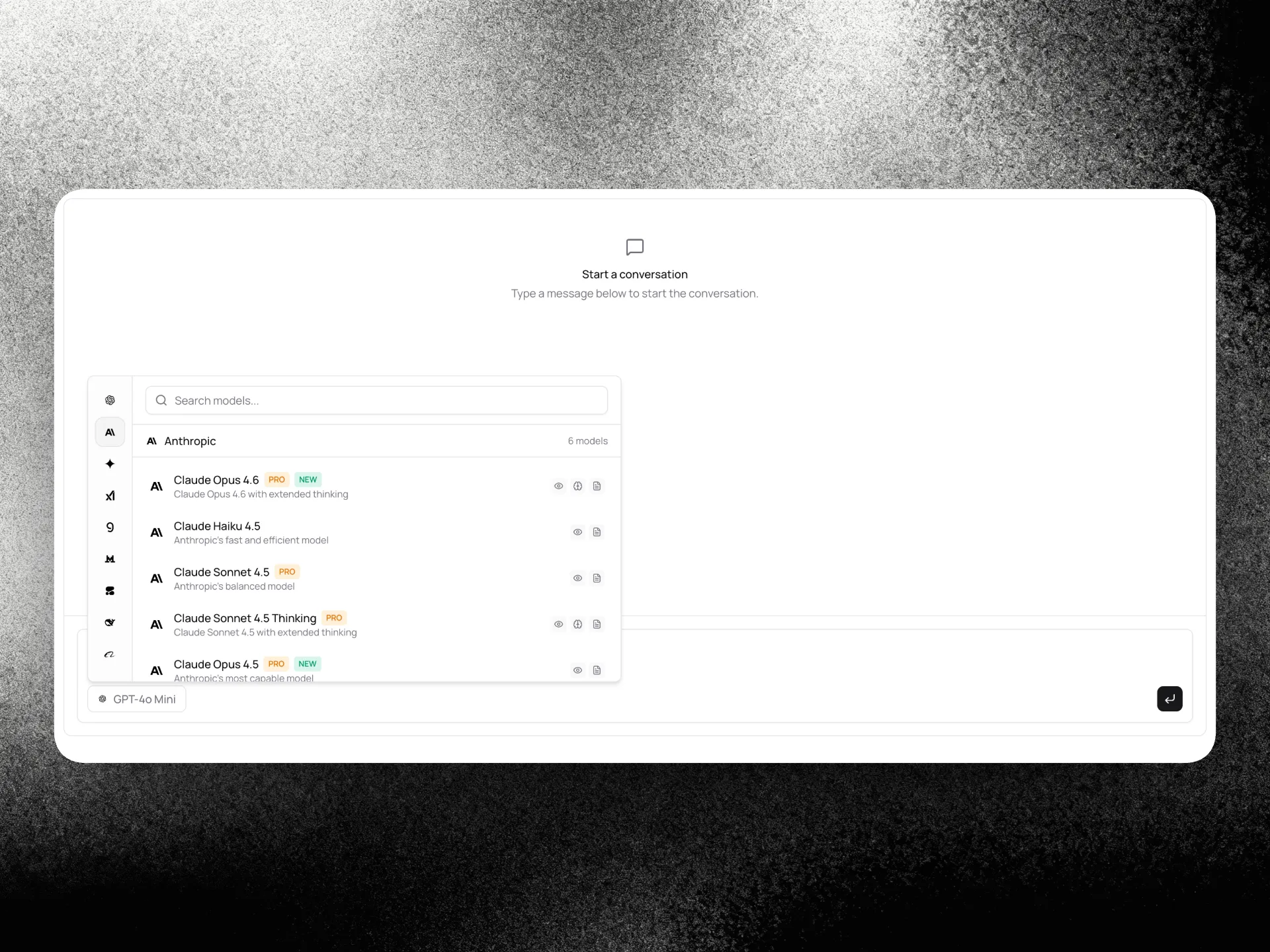 Поддержка выбора нескольких моделей, управления диалогами и нескольких провайдеров